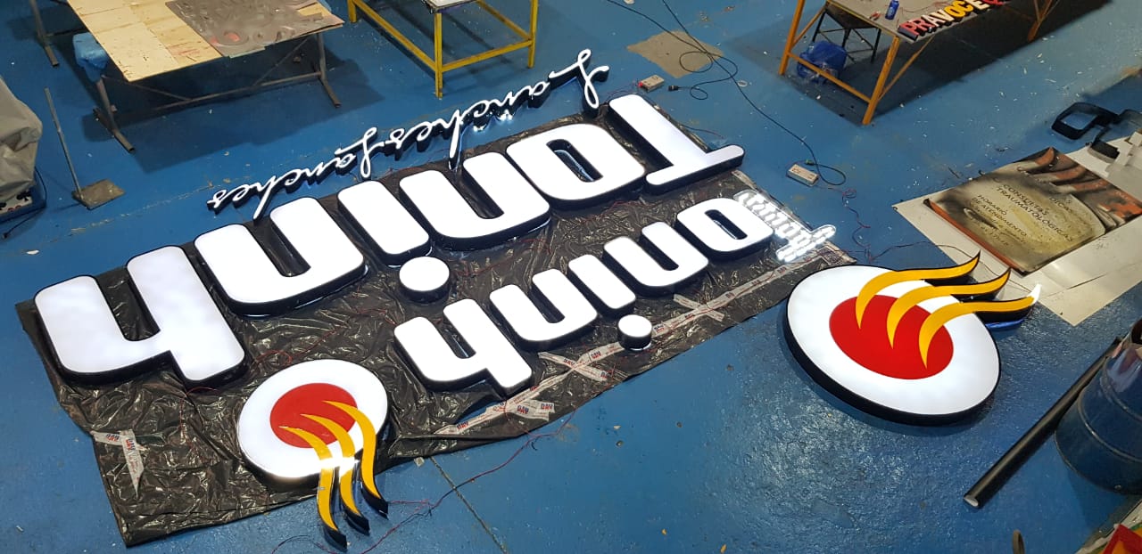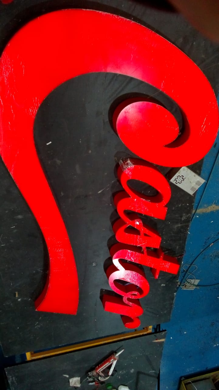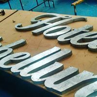 O aço galvanizado é um material extremamente resistente e largamente utilizado em diversas aplicações é um material com acabamento de pintura automotiva dando mais durabilidade a letra podendo ser adesivada e incluir iluminação indireta (por traz da letra).